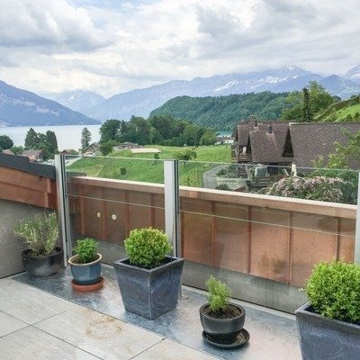 Here we see a lovely view in Switzerland, which the residents can enjoy from their balcony.