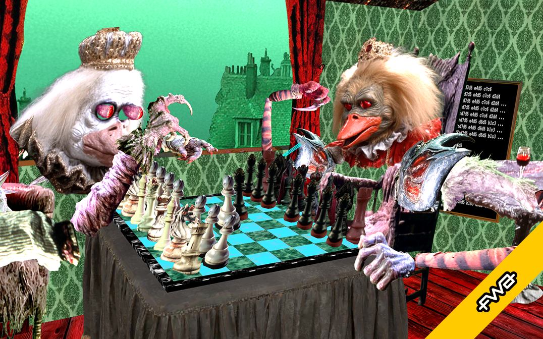 Possession of chess by Geoffrey Lillemon 2025 is a browser based WebGL system made for the oculartv2 website that uses machine-learning to control two monarchical ghosts in a real-time chess game.
