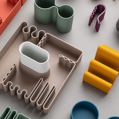 This line of bFRIENDS desktop organizers is by British industrial design firm Pearson Lloyd. They're 3D printed by British manufacturer Batch.Works, out of recycled plant-based plastic that was formerly packaging, and make for quite the vibrant deskscape.
