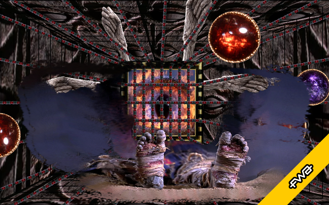 A WebGL based dynamic composition set within an Egyptian sarcophagus. Randomised raider arms reach into the tomb, positioning broken rocks across the canvas,