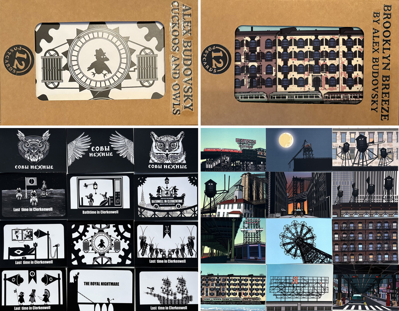 Впервые за долгие годы озаботился мерчем и привёз с собой на продажу два набора открыток, один цветной с кадрами из "Бруклинского Бриза" и второй ч/б, с кадрами из Клеркенвелльской трилогии и не только. Буду продавать на своих выступлениях, в том числе и сегодня в 7:30 в Kvartirabooks. Тем кто купит ещё и подпишу. До встречи вечером! Билеты ТУТ.