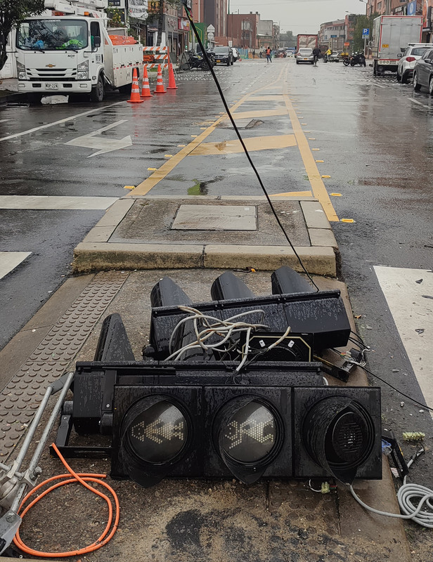 И светофор уже лежит.