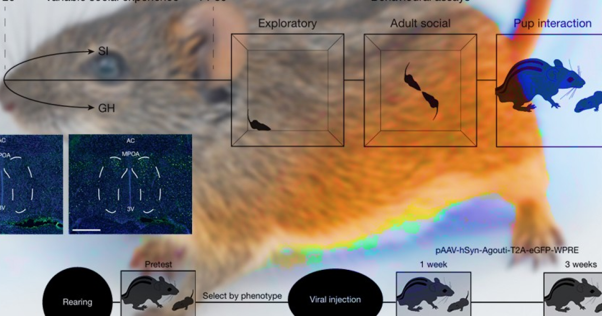 Американские ученые продемонстрировали связь между низкой активностью гена agouti в преорбитальной области гипоталамуса, изоляцией и родительским поведением у самцов четырехполосых мышей. Работа опубликована в журнале Nature.