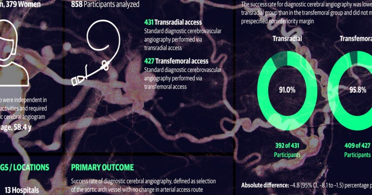 Ни Вэй (Wei Ni) из Университета Фудань с коллегами провел клинические испытания и выяснил, что при проведении ангиографии мозговых сосудов доступ через бедренную артерию лучше, чем через лучевую. В рандомизированных испытаниях приняли участие 858 пациентов (медианный возраст 58,4 года; 55,8 процента — мужчины), направленных на диагностическую церебральную ангиографию, в 13 китайских клинических центрах. Пределом не меньшей эффективности была установлена пятипроцентная абсолютная разница в успехе диагностики. Результаты опубликованы в журнале JAMA Network Open.